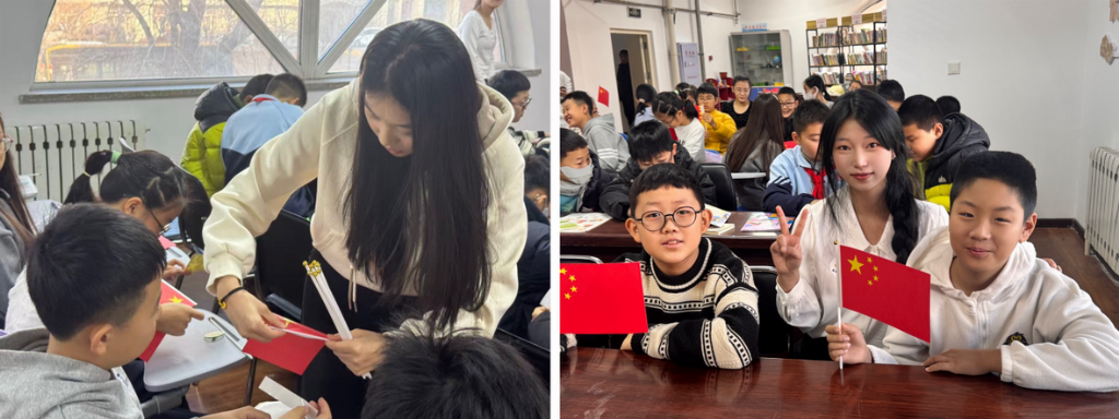 在“祖国旗帜在我心”主题活动中,志愿者们带领孩子们认识国旗、党旗、军旗等旗帜的深刻内涵,通过红旗手工制作、革命故事分享,让红色基因在孩子们心中生根发芽。孩子们专注剪裁、粘贴的模样,正是家国情怀最生动的注脚。孩子们举着亲手制作的红旗,眼神里满是自豪。