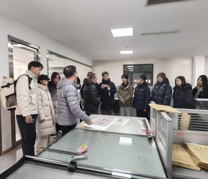 在激光防伪版研发部,团队成员了解到公司通过微文字雕刻、隐形图案等高新技术,为烟标、票据、包装等领域提供防伪解决方案,彰显了“小版辊、大科技”的产业价值。同学们还与设计师交流了色彩管理、图案原创、市场趋势分析等内容,对“设计驱动产品增值”有了更深理解。