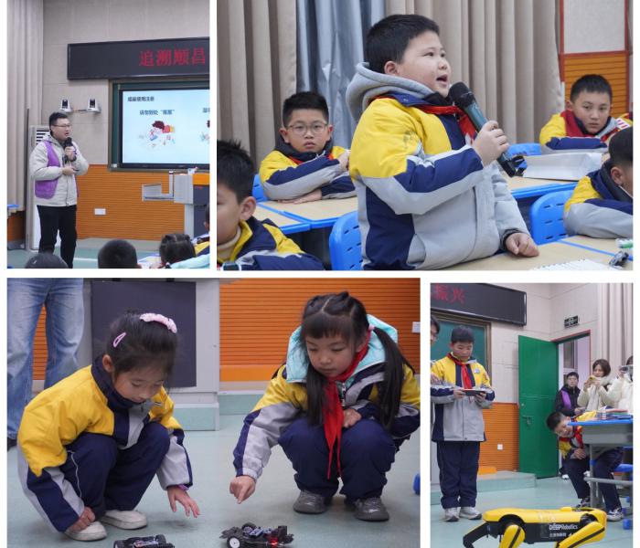 智能小车与机械狗展示:实践队带来智能小车与机械狗互动展示,组织同学们上台体验,并结合演示讲解原理,引导大家在“玩中学”里激发对科学的好奇心与探索欲。