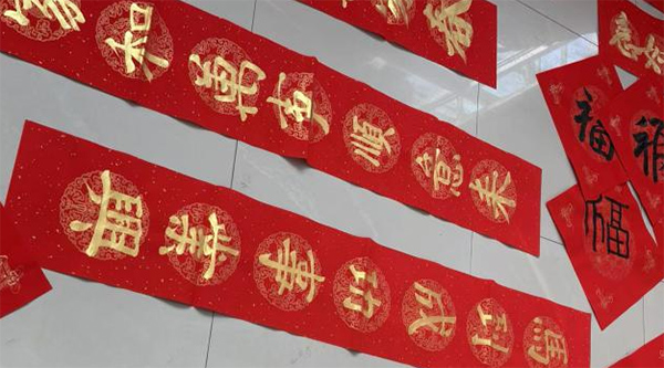 初心如磐,志愿同行悟担当 近半天的志愿活动中,队员们虽手臂发酸、指尖沾墨,却始终热情满满、干劲十足。看着读者们脸上真挚的笑容,听着一声声真诚的感谢,所有的疲惫都化作了满满的成就感与幸福感。实践队员李同学擦了擦额角的汗水,笑着说道:“能以笔墨为媒,在图书馆这个书香阵地为大家送新春祝福,真的特别有意义。不仅亲手为大家送上了祝福,更在书写的过程中感受到了中华传统文化的魅力,体会到了志愿服务双向奔赴的温暖。”队员王同学则感慨道:“这是我们继图书整理志愿服务后,再次来到凤台县图书馆开展活动,从守护书香、服务读者,到以墨传情、送上祝福,志愿的形式不同,但服务的初心始终不变。能为家乡的公共文化生活添一份力,为身边的人送一份暖,就是我们作为新时代大学生践行青春担当的最好方式。”此次活动,实践队累计书写并赠送春联、福字200余幅,让新春的祝福飘满图书馆的各个角落,也让志愿的温暖留在了每一位读者的心中。