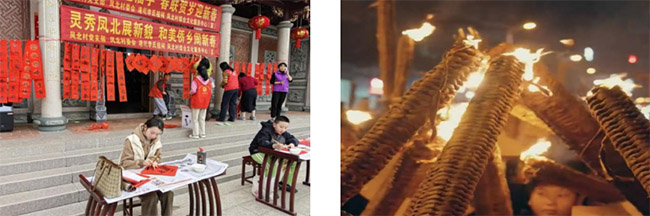在笔尖与火光中传递祝福。在泉港社区,队员们铺纸研墨,为居民义写春联。楷行隶篆,一个个“福”字跃然红纸,与民间书法家的交流让大家深知:书法是福文化雅俗共赏的载体。夜幕降临,晋江山前火把节将气氛推向高潮——火把如龙穿行村巷,人们传递火种,也传递“驱散晦气、照亮前程”的美好祈愿。篝火旁,队员们与当地青年畅谈传统节庆的文旅新生。