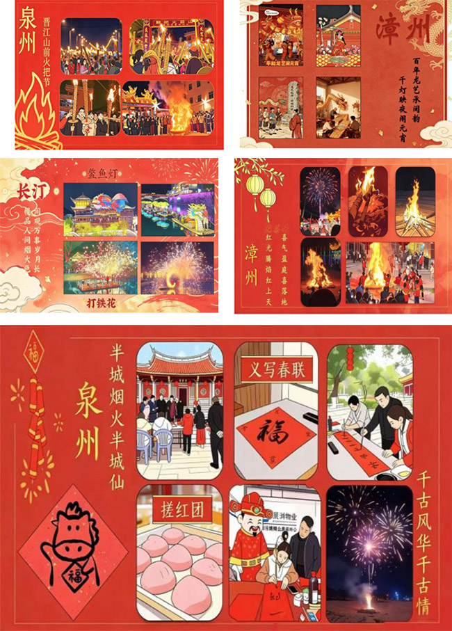 在民俗活力中感受福韵。实践队走进漳州,体验龙艺闹元宵、参与烧柴井祈福。见证龙艺游街,福字灯与吉祥彩绘灯组交相辉映,映照家国情怀;围坐柴井祈愿,火光照亮邻里温情与代际传承。队员们感悟:传统民俗让福文化生生不息、代代相传。