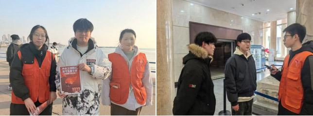 从博物馆的历史回望,到城市地标的现实对话,实践团将学习成果转化为宣讲行动,走进五四广场开展公众宣讲与文化传播活动。成员们以随机采访、面对面交流的形式,与往来游客、市民群众亲切互动,围绕五四运动历史知识、青岛在五四运动中的角色、新时代青年如何传承五四精神等话题展开沟通,全面了解社会层面的认知情况。在交流过程中,团队向市民与游客分发五四主题宣传海报,细致讲解五四运动与青岛的深厚渊源,用青年语言讲述红色故事,用青春声音传递爱国情怀。活动最后,实践团与市民游客合影留念,在轻松温馨的氛围中完成一次接地气、有温度的红色宣传,让五四精神走出场馆、走进街头、深入人心,让红色薪火在岛城大地持续传递、生生不息。