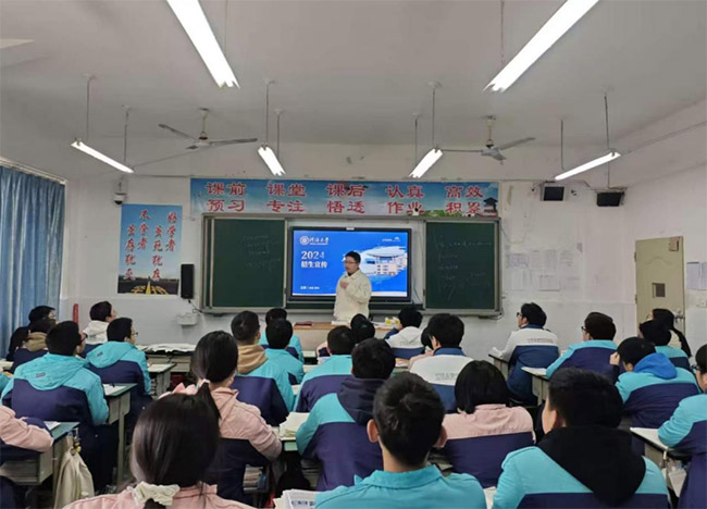 本次宣讲活动是河海大学机电工程学院“源泉工程”系列社会实践的重要组成部分,宣讲团严格围绕“识河海”“看生活”“解疑惑”三大核心模块展开,内容贴合高中生学习生活实际,兼具专业性与实用性。在“识河海”环节,宣讲团成员通过播放校情宣传片、现场讲解的方式,带领同学们走进河海大学百余年的办学历史,详细介绍了学校水利、土木、机电等优势学科的行业地位与办学实力,重点聚焦机电工程学院的专业设置、师资力量及机器人、人工智能领域的科研成果,让同学们对学院的人才培养体系有了清晰认知。同时,宣讲团结合四川省历年高考录取数据,用通俗易懂的语言解读河海大学招生政策及专项计划,为同学们的升学报考提供精准的政策参考。