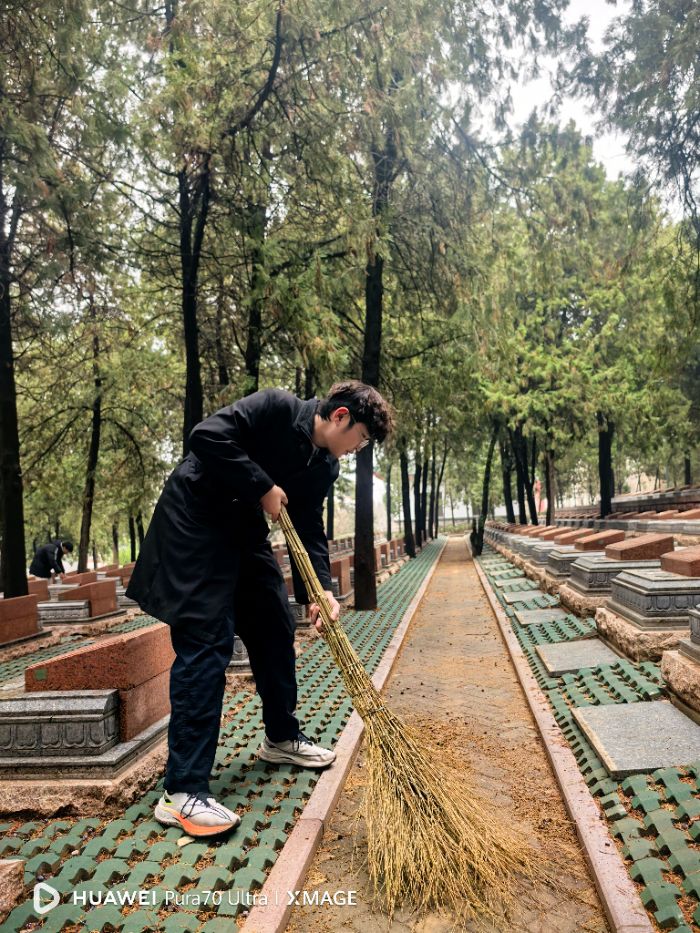 为守护英烈安息之地,团队成员主动拿起清洁工具,认真清扫园区环境,仔细擦拭每一块墓碑。大家以实际行动缅怀先烈,在躬身实践中体会责任与担当,让崇敬之心化为守护之举。