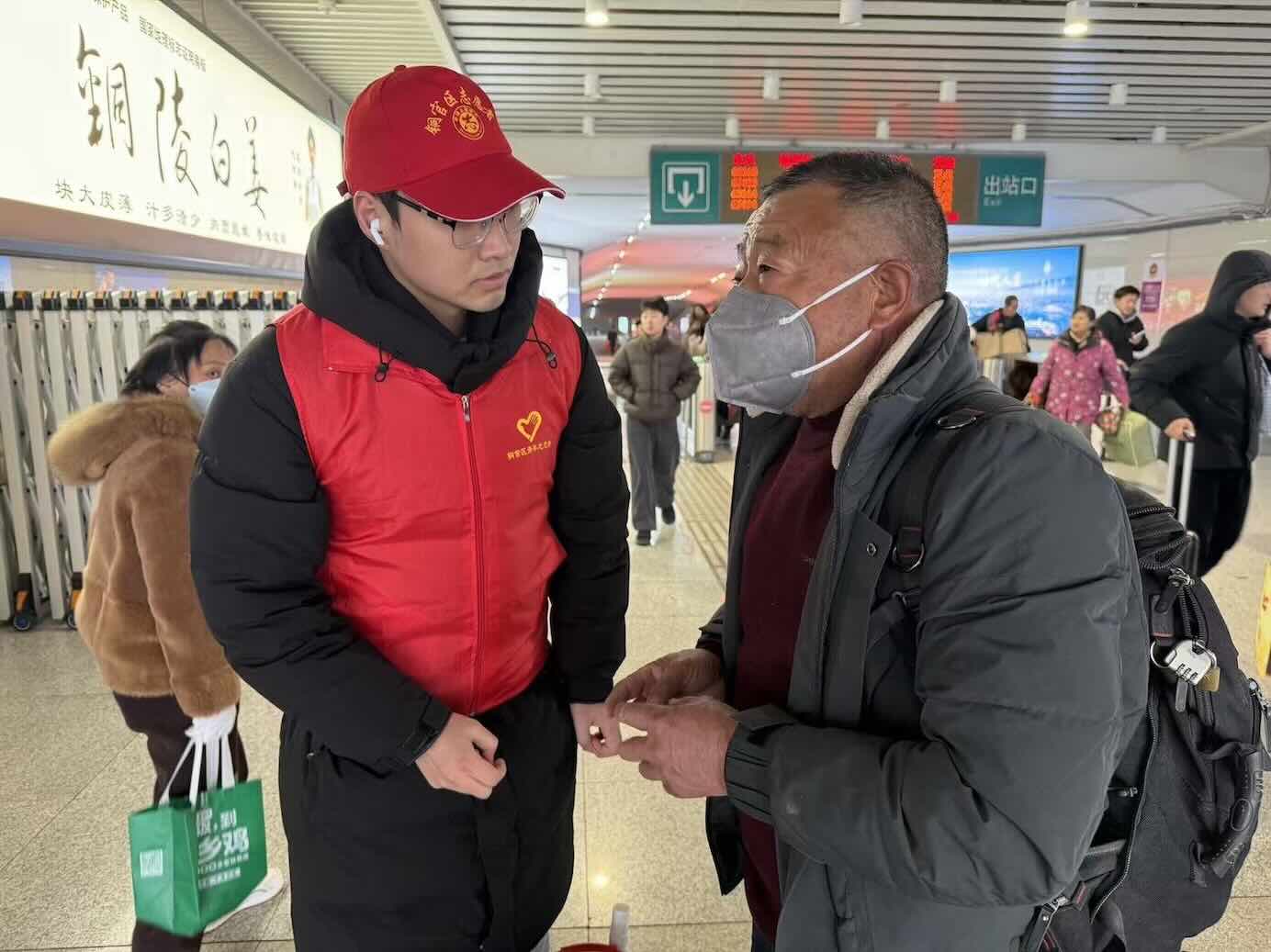 2026年2月2日至2月7日,“依皖”实践团实践成员在安徽省铜陵市铜陵站开展暖冬行动志愿服务社会实践活动。在为期六天的服务中,实践成员立足车站出站口,以耐心、细心、热心为过往旅客提供引导与帮助,用实际行动践行青年责任,为春运出行增添温暖与便利。