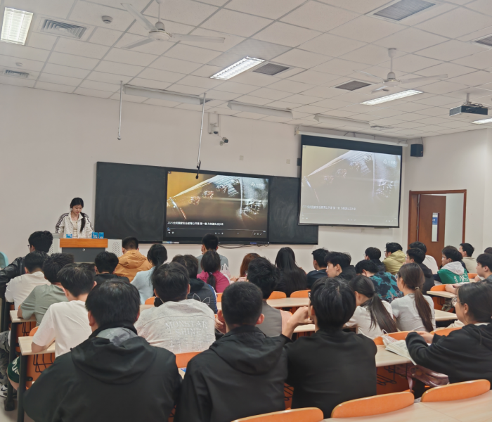 随后,团支部开展国家安全主题宣讲活动。宣讲围绕时代之问、认知重塑、能力锻造等多个维度展开,系统解读总体国家安全观的核心内涵与重点领域。通过贴近学生的案例讲解,帮助同学们认清国家安全的重要作用,有效提升风险意识和防范意识。
